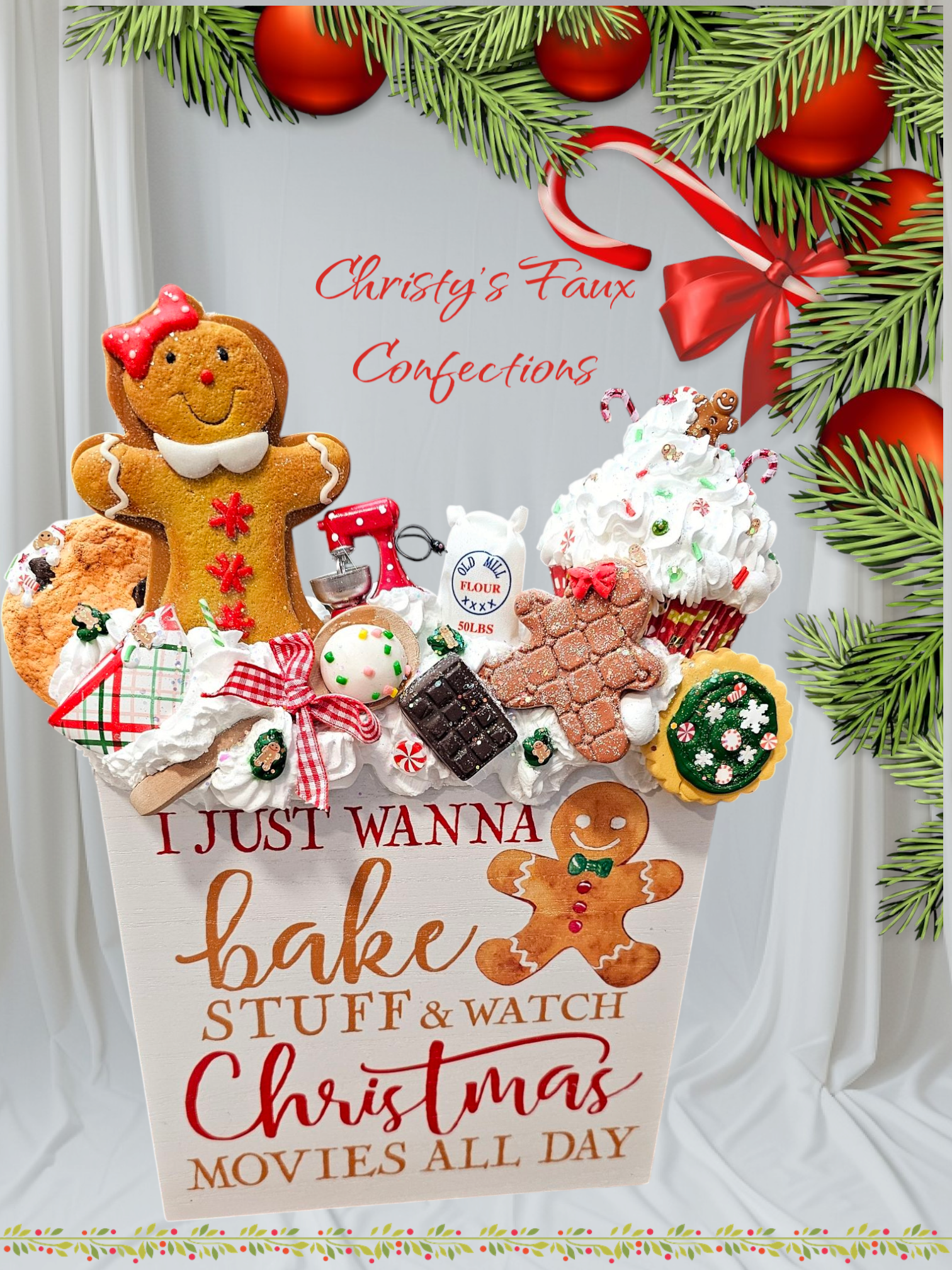 Hello! My name is Christy and welcome to my website! I make and design faux sweets and desserts of all kinds, big and small. I had a wreath business for 7 years and one day, I had to design a wreath with fake cake. Enjoying this design process, I taught myself how to incorporate fake sweets into my wreaths and began to fall in love with designing all sorts of fake sweets. So, now I primarily fake bake! I would love to create something for your home, kitchen, or business. All of my fake treats make great, unique gifts, as well as excellent photo props. I hope you enjoy my “fakery”! What can I fake for you?